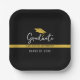 Eleva tu fiesta de graduación con estas modernas placas de papel personalizadas en negro y oro con un elegante guión de "Graduado", un gráfico de tope de graduación y texto de personalizable para el nombre del graduado y el año de clase. Perfecto para las celebraciones de la escuela secundaria y universitaria, estos elegantes platos desechables le dan un toque elegante a su decoración fiesta mientras que la limpieza es sin esfuerzo.