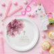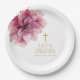 Plato De Papel Elegante Comunión floral de acuarela rosa