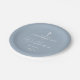 Este elegante plato de papel de confirmación azul polvoriento puede ser personalizado con su información en tipografía de moda. Diseñado por Thisisnotme©