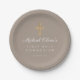 Plato De Papel Elegante Cruz Religiosa Taupe Primera Comunión