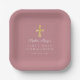 Plato De Papel Elegante cruz rosa Chica primera comunión
