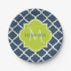 Plato De Papel Elegante cuatrefoil verde de la Marina Monográfica