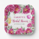 Platos de Papel de Despedida de Soltera Floral Acuarela Rosa Brillante Elegante