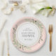 Con delicadas hojas de vegetación de acuarela sobre un fondo rosa claro, este plato de papel botánico chic para ducha de parejas se puede personalizar con los detalles de su evento especial. Diseñado por Thisisnotme©