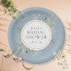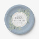 Plato De Papel Elegante Dusty Blue Gold Greenery Despedida de Sol