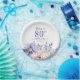 Estos elegantes y modernos platos de papel para fiestas de cumpleaños número 80 cuentan con flores de verano rosadas y violetas y un nombre y fecha para personalizar. Diseñado por Susan Coffey.