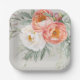 Plato De Papel Elegante Floral Acuarela en Durazno y Marfil