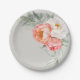 Plato De Papel Elegante Floral Acuarela en Melocotón y Marfil