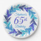 Plato De Papel Elegante guirnalda azul 65 cumpleaños
