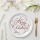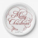 Este elegante plato de papel para Navidades presenta un mensaje de "Feliz Navidad", maravillosamente callizado, rodeado de torbellinos decorativos. Un broche de oro con bayas aporta un toque festivo.