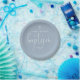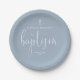 Plato De Papel Elegante letra moderna azul polvoriento Bautizo