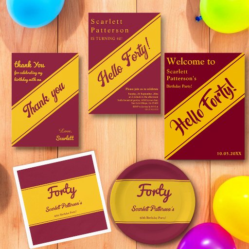 Esta elegante plancha de papel de color burdeos y dorado es perfecta para un cumpleaños moderno. el diseño es sencillo, con una elegante caligrafía de oro sobre un fondo burdeos.