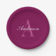 Plato De Papel Elegante Magenta rojo, rosa y blanco nombre y mono