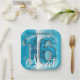 Esta elegante placa de papel Sweet 16 deslumbra en brillante plata y azul gema. Un radiante, faceteado "16" brilla en el centro como un foco de zafiro, coronado por la palabra "dulce" en escritura blanca fluida. Un nombre de personalizable arcaba arriba, mientras un borde metálico plateado capta la luz —mezclando brillo fiesta con estilo personal en un diseño inolvidable.