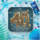 Plato De Papel Elegante Moda Lujoso Azul y Oro 40 cumpleaños