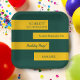 Esta elegante placa de papel verde y dorado es perfecta para un cumpleaños moderno. el diseño es sencillo, con una elegante caligrafía verde sobre rayas doradas sobre un fondo verde.