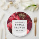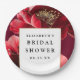Estas elegantes platos de papel para baño de novia con flores rojas borgoña y doradas pueden ser personalizadas con su información en tipografía moderna. Diseñadas por Thisisnotme©