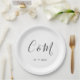 Plato De Papel Elegante Monograma Boda blanco y negro