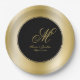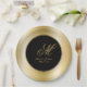 Plato De Papel Elegante Monograma Dorado Script Boda Negro