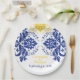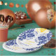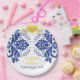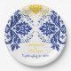 Plato De Papel Elegante motivo damasco azul real, boda amarillo