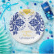 Elegante motivo damasco de placa de papel azul real, boda amarillo.