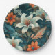 Plato De Papel Elegante Naranja Turquesa Flor Patrón Floral