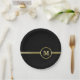 Plato De Papel Elegante oro Monograma personalizado sobre negro