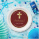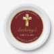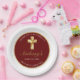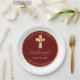 Gracias a los invitados, amigos y familia con esta elegante Comunión Santa de Oro Gracias Fiesta Plate. Este diseño presenta una cruz dorada con un simple fondo rojo. Personalice el tipo de letra y el color y cambie el texto y la fecha para adaptarlos a sus necesidades.