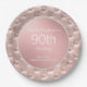Elegante plato de papel de 90 cumpleaños, de color rosa/oro rosa, diseñado con perlas y un toque de color. Como todo el texto es personalizable, estas placas de papel se pueden personalizar para chicas o mujeres de cualquier edad.