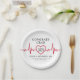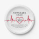 Este plato de papel de graduación con temática de latido cardíaco presenta una audaz línea de electrocardiograma negro que cruza el diseño, con un tapón de graduación en el centro. Dentro de la gorra, se muestra "Clase de 2025" (o cualquier año), lo que lo convierte en un tributo perfecto a un graduado de la escuela de medicina o enfermería. En la cima, "Grado de Felicitaciones" está elegantemente escrito, pero también se puede cambiar a "Felicitaciones", "Médico" o "Enfermera" para reflejar la profesión de graduado. Debajo, hay espacio para el nombre y la escuela del graduado, agregando un toque personalizado. Un marco simple de línea negra bordea los bordes, creando un aspecto limpio y pulido. Diseñado tanto para el estilo como para la función, esta placa de papel en blanco y negro es totalmente personalizable: cambie la línea EKG, las fuentes y los colores de fondo para que coincidan con los colores de la escuela o las preferencias personales. ¡Una gran adición a cualquier fiesta de graduación, honrando la dedicación y el trabajo duro que costó alcanzar este hito!