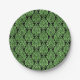 Plato De Papel Elegante patrón de damasco negro verde esmeralda v