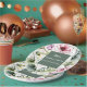 Platos de fiesta floral de bonito que te ayudarán a celebrar los 50 años de estilo. Los florales son multicolores con énfasis en el verde y el rosa en un estilo acuarela con un guión blanco. Las placas pueden ser totalmente personalizadas para reflejar cualquier edad u ocasión y honores. Son parte de una colección más grande que incluye invitaciones, servilletas de papel, velas, pegatinas y mucho más, todo diseñado para mezclarse armoniosamente con el tema de las placas. Esta colección cohesiva de suministros de fiesta asegura que su celebración esté bellamente coordinada