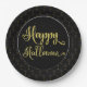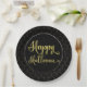 Plato De Papel Elegante Purpurina De Oro En Halloween Feliz Negro