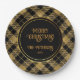 Plato De Papel Elegante Purpurina Tartan Black Gold