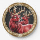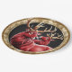 Plato De Papel Elegante Red Reindeer Moose Gold Nochebuena