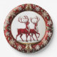 Plato De Papel Elegante Red Reindeer Moose Gold Nochebuena