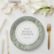 Diseñado para coordinar con nuestra colección de regadera de boda Soft Spring Leaves. Con delicadas hojas de acuarela, este plato de papel botánico chic para regadera de boda se puede personalizar con la información de su regadera de boda especial. Diseñado por Thisisnotme©