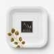 Plato De Papel Elegante Rosa Monograma Blanco