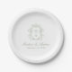 Plato De Papel Elegante Sage Chinoiserie Monograma Boda Escudo