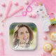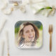 Elegantes placas de papel de la fiesta de graduación con la foto del graduado con "Graduado" en un guión de moda y su nombre y año de clase en una simple tipografía moderna.