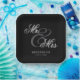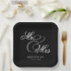 Sencillas y elegantes platos de Mr. y Mrs. boda y servilletas a juego para complementar su tema.
