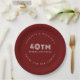 Plato De Papel Elegante texto Borgoña 40 aniversario Boda