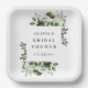 Estas elegantes platos de papel para despedida de soltera con flores campestres en verde oliva pueden ser personalizados con su información en tipografía moderna. Diseñados por Thisisnotme©