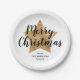Plato De Papel Elegante White Faux Gold Star Feliz Navidad