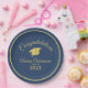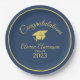 Las planchas de papel de los partidos de graduación, sencillas pero elegantes, cuentan con un círculo dorado alrededor del borde y un texto dorado moderno sobre un fondo azul marino. Una apariencia elegante y elegante para un graduado de secundaria o universitario. En el centro de la placa se encuentra un mortero con gorro de graduación dorado. Personalice con el nombre y el año de graduación de la licenciatura.
