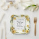 Elegante diseño floral de daffodils amarillos de diseño "Cumpleaños 70" con un marco cuadrado floral de daffodils que rodean un marco blanco y verde sobre un fondo amarillo y blanco angustiado.