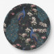 Plato De Papel Elegantes pavos reales y flores de magnolia negro