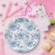Plato De Papel Elegantes Peonies con grabado azul y blanco