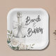 Agregue un toque de acabado pulido a los favores de su fiesta de despedida de soltera con estos platos de papel "Brunch and Bubbly" Floral Blanco Elegante. Con delicadas flores blancas, un hermoso lazo blanco, una botella de champán y una fuente de letra sofisticada, es la manera perfecta de unir su tema.
