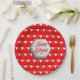 Elegante y lindo diseño de Navidades con una insignia 3D con un guión de Felices Fiestas y un patrón de triángulos blancos y rojos en un color rojo Navidad.